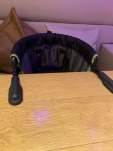 子供イスに座れないお子様でもベビーカーのままテーブルに横付けできるので、助かりますね!